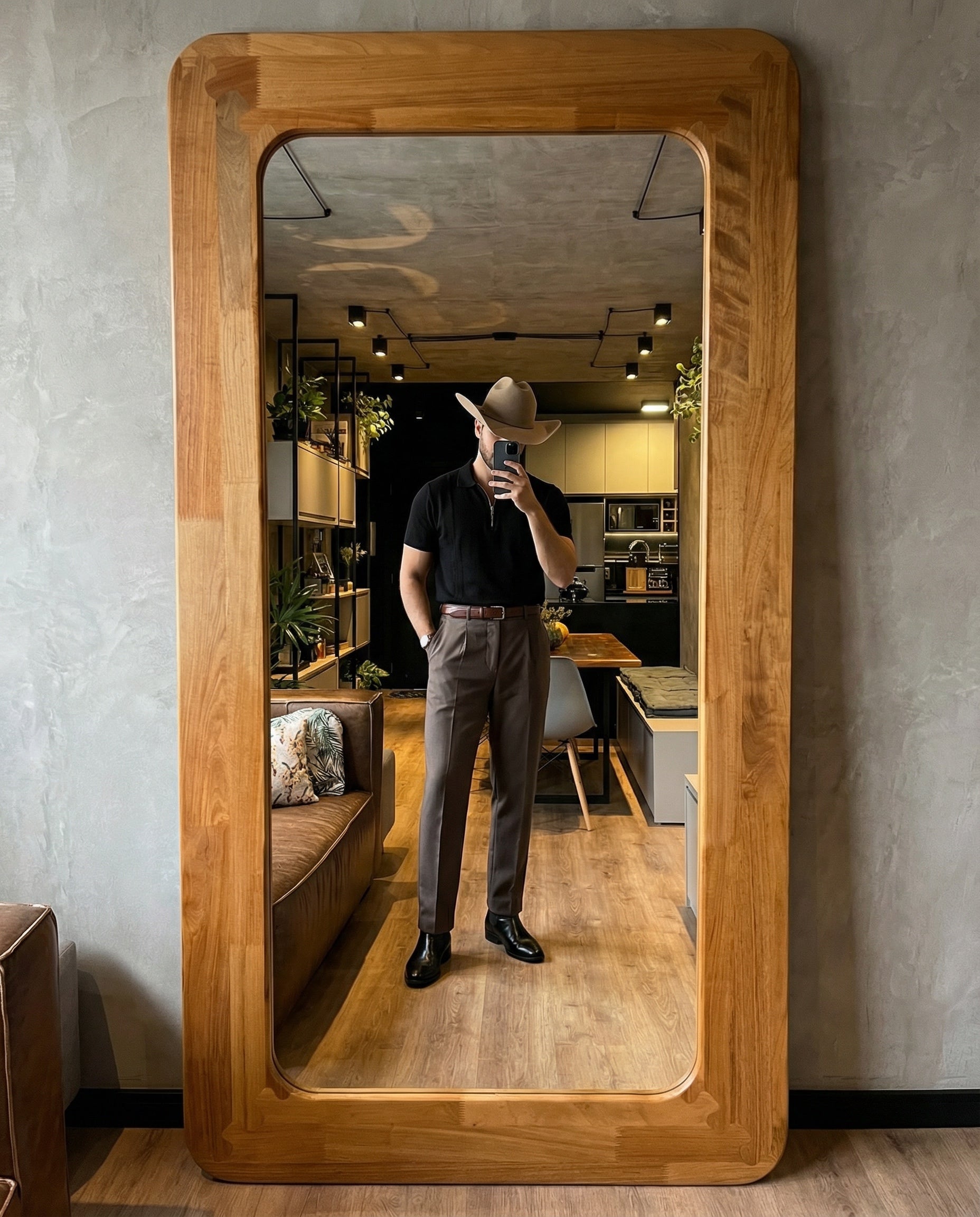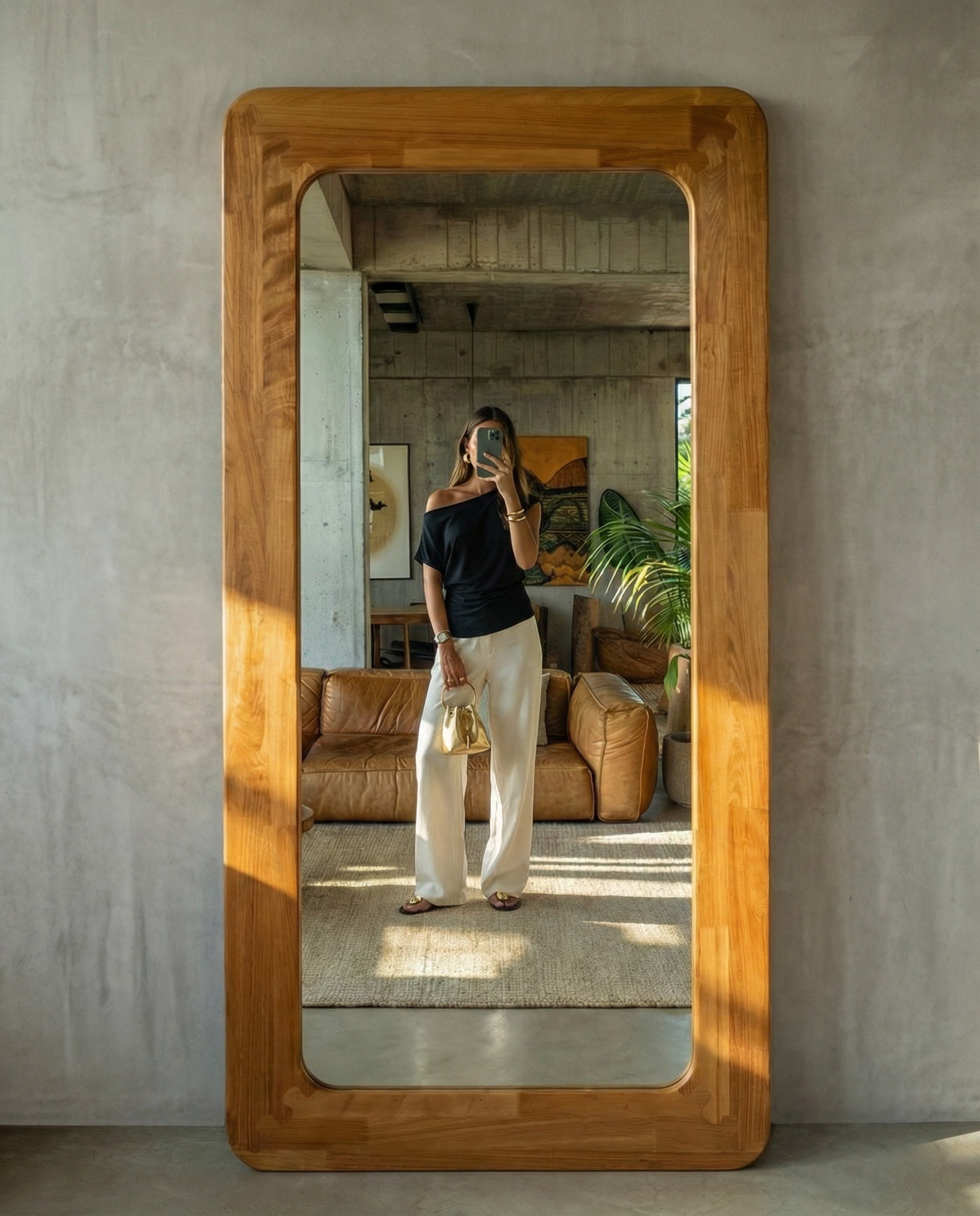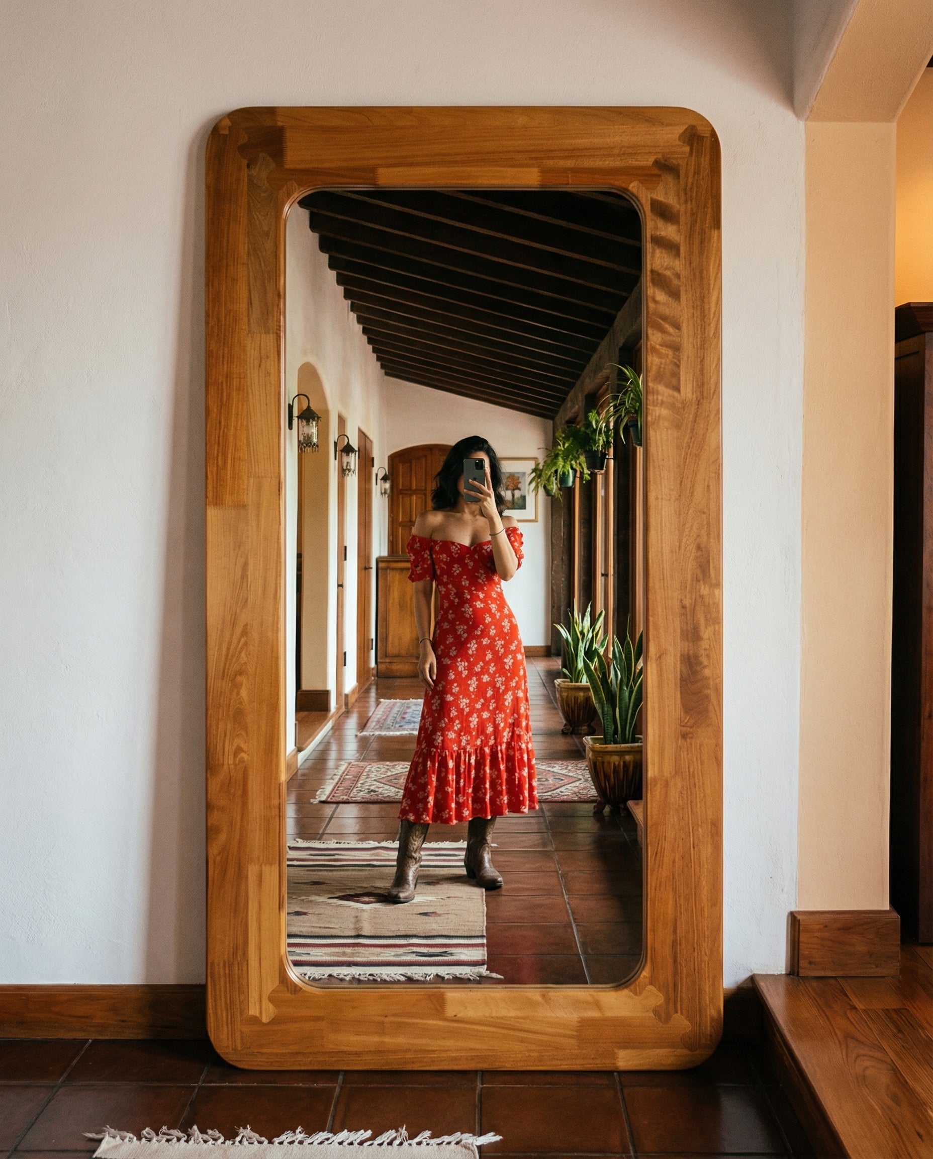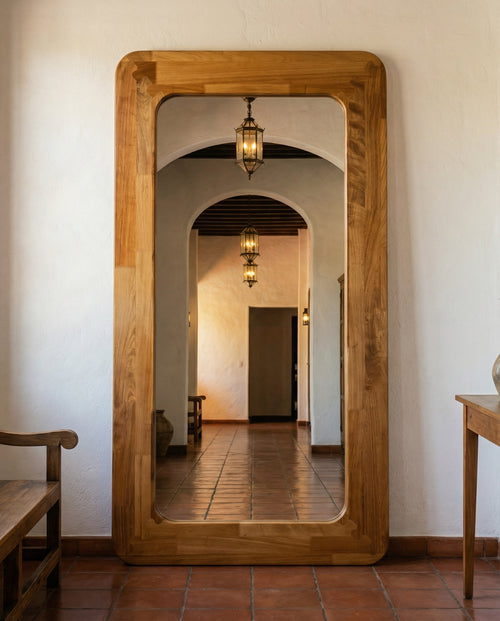 Espejo de cuerpo completo fabricado en Tzalam, madera de excepcional durabilidad y resistencia natural